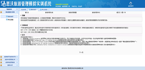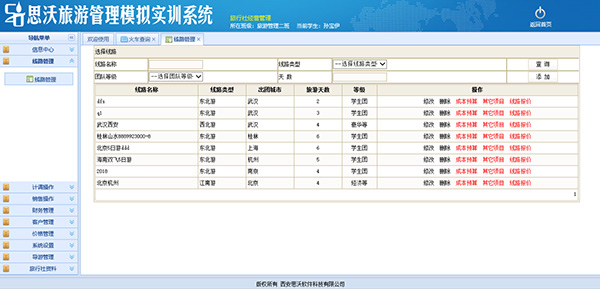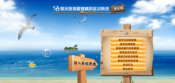 思沃旅(lv)(lv)(lv)(lv)游(you)管(guan)(guan)(guan)理(li)模(mo)擬(ni)實(shi)訓系統分(fen)為(wei)(wei)模(mo)擬(ni)操(cao)作(zuo)和旅(lv)(lv)(lv)(lv)游(you)知識練習兩(liang)大(da)模(mo)塊,涵蓋旅(lv)(lv)(lv)(lv)行社業(ye)的(de)(de)(de)分(fen)銷、操(cao)作(zuo)、結算、統計(ji)分(fen)析(xi)等(deng)各大(da)業(ye)務模(mo)塊,該(gai)實(shi)訓教學(xue)(xue)(xue)平臺軟件具(ju)備團(tuan)(tuan)隊(dui)(dui)計(ji)劃、旅(lv)(lv)(lv)(lv)游(you)預訂、客房預訂、機票預訂、景點(dian)門票預訂、團(tuan)(tuan)餐預訂、車輛預訂、收付款管(guan)(guan)(guan)理(li)、供應(ying)商、團(tuan)(tuan)隊(dui)(dui)客戶、VIP散(san)客管(guan)(guan)(guan)理(li)等(deng)功(gong)能(neng)。從旅(lv)(lv)(lv)(lv)行社經營管(guan)(guan)(guan)理(li)、酒店(dian)經營管(guan)(guan)(guan)理(li)、旅(lv)(lv)(lv)(lv)游(you)資源(yuan)開發與(yu)管(guan)(guan)(guan)理(li)、旅(lv)(lv)(lv)(lv)游(you)行政管(guan)(guan)(guan)理(li)、導游(you)實(shi)務與(yu)技(ji)巧五(wu)個(ge)方(fang)面讓學(xue)(xue)(xue)生(sheng)參與(yu)旅(lv)(lv)(lv)(lv)游(you)管(guan)(guan)(guan)理(li)的(de)(de)(de)模(mo)擬(ni)操(cao)作(zuo),每個(ge)方(fang)面又(you)細分(fen)為(wei)(wei)實(shi)際流程(cheng)中(zhong)涉及的(de)(de)(de)每個(ge)細節,因此,學(xue)(xue)(xue)生(sheng)可以(yi)從中(zhong)學(xue)(xue)(xue)習到旅(lv)(lv)(lv)(lv)游(you)管(guan)(guan)(guan)理(li)的(de)(de)(de)全面的(de)(de)(de)操(cao)作(zuo)流程(cheng)。此外(wai),軟件中(zhong)教師端對應(ying)的(de)(de)(de)實(shi)驗(yan)(yan)設置,讓教師可以(yi)方(fang)便地為(wei)(wei)學(xue)(xue)(xue)生(sheng)設置實(shi)驗(yan)(yan)的(de)(de)(de)不同(tong)(tong)因素(su),同(tong)(tong)時(shi),教師還可以(yi)查看學(xue)(xue)(xue)生(sheng)的(de)(de)(de)操(cao)作(zuo)結果,從而能(neng)夠(gou)對學(xue)(xue)(xue)生(sheng)的(de)(de)(de)實(shi)驗(yan)(yan)進行評價。教學(xue)(xue)(xue)軟件系統的(de)(de)(de)使用(yong)可以(yi)提高學(xue)(xue)(xue)生(sheng)的(de)(de)(de)學(xue)(xue)(xue)習興(xing)趣,同(tong)(tong)時(shi)也為(wei)(wei)教師減輕工(gong)作(zuo)負擔。本公司為(wei)(wei)了(le)更好滿足高校的(de)(de)(de)教學(xue)(xue)(xue)需(xu)求,會根據高校的(de)(de)(de)需(xu)求提供旅(lv)(lv)(lv)(lv)游(you)管(guan)(guan)(guan)理(li)實(shi)訓室解決方(fang)案(an)。