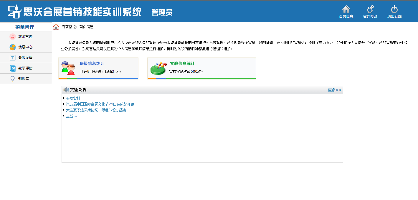 管(guan)理員包(bao)含(教室管(guan)理,信(xin)息中(zhong)心,參數(shu)設置,教學評估,知識庫等模塊(kuai))